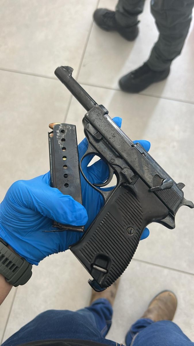 במקום אותרו שלושה בגירים וקטין, כאשר במהלך הסריקות נמצא אקדח מסוג "וולטר" מוסלק בתוך מיקרוגל. בנוסף נתפסו מחסנית עם תחמושת, חומר החשוד כסם מסוג קריסטל, סכום כסף מזומן של כ-3,000 ש"ח ומספר טלפונים ניידים.