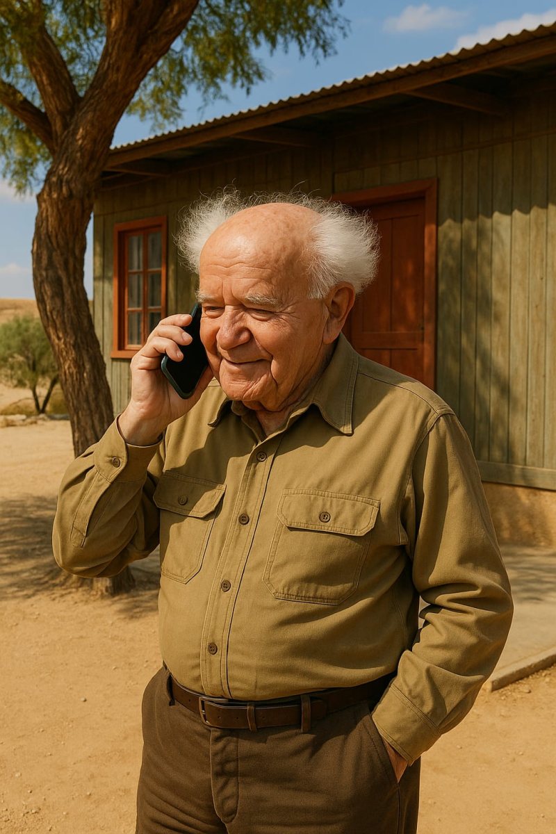 דוד בן-גוריון, ראש הממשלה הראשון של מדינת ישראל. הפיתוח, אשר נעשה בשיתוף פעולה עם חברת Jeen.ai המובילה בתחום הבינה המלאכותית, ומיקרוסופט ישראל,