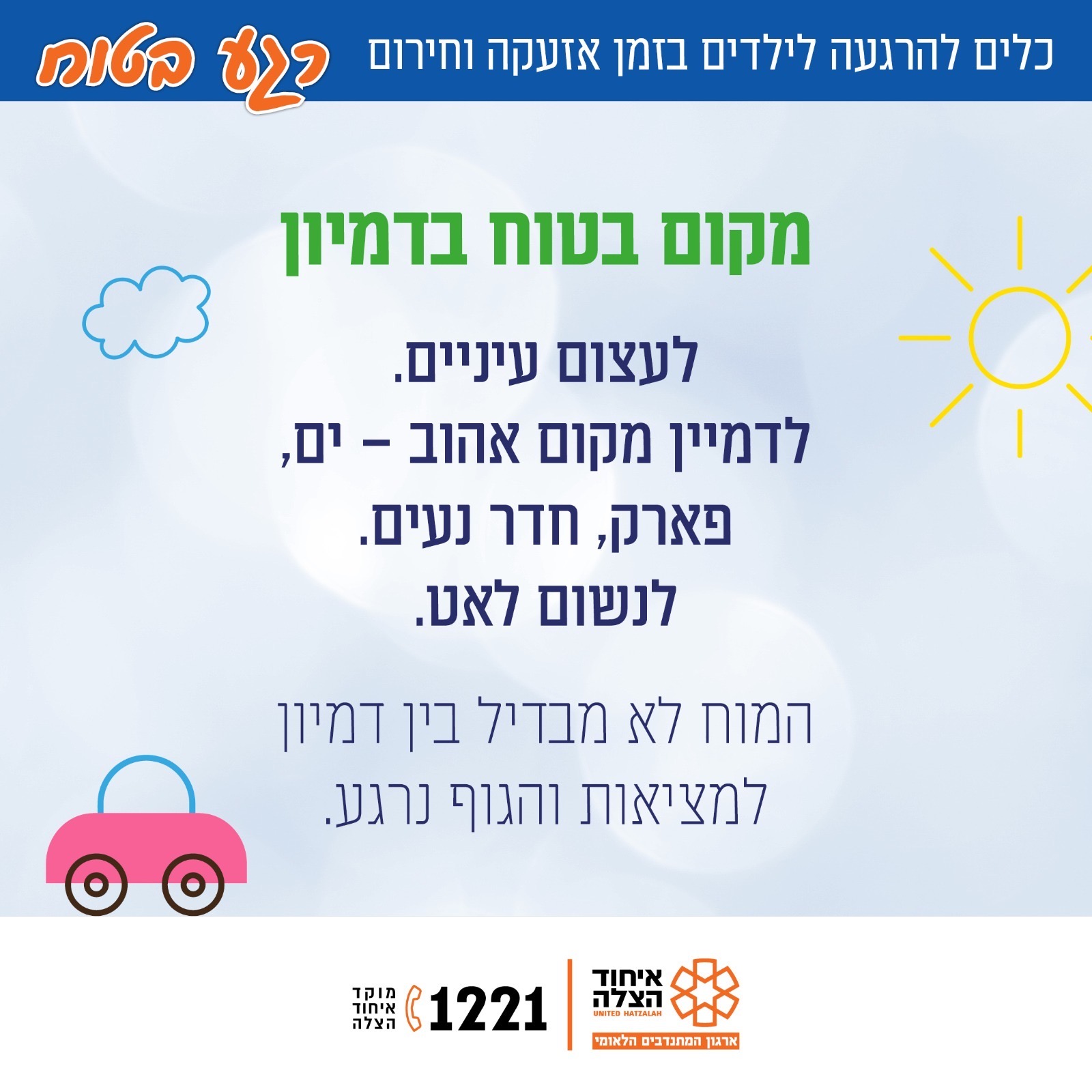 בצל ההסלמה הביטחונית והאזעקות החוזרות, בארגון איחוד הצלה משיקים מדריך מיוחד להורים: “חוסן לילדים בזמן אזעקה וחירום” – סדרת שמונה תמונות ברורות ומאוירות, שמעניקות כלים פרקטיים להתמודדות נכונה עם ילדים ברגעי לחץ.